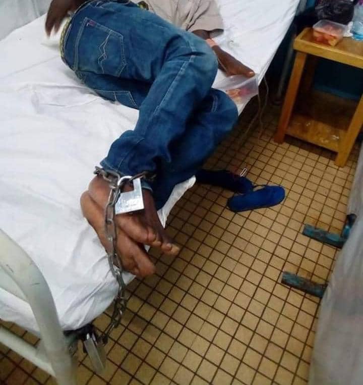 Les images de Oufo Maurice, militant du Mouvement pour la renaissance du Cameroun (MRC) sont devenues virales sur le réseaux sociaux. Agé de 68 ans, l’homme est détenu à la prison centrale de New-Bell a Douala. Malade, il a été hospitalise à l’hôpital Laquintinie de Douala où il est enchaîné sue son lit. Une situation qui a suscité l’indignation de certains hommes politiques et activistes. Le journaliste Jean Bruno Tagne trouve cette situation « inhumaine pour quelqu’un qui n’a rien volé, qui n’a tué personne, qui n’a rien cassé. Il n’a fait que manifester, dans un pays qui prétend être une démocratie ».